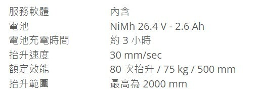 ◎重量僅為 6.8 kg。儘管重量輕,但其抬升能力可高達 255 kg。