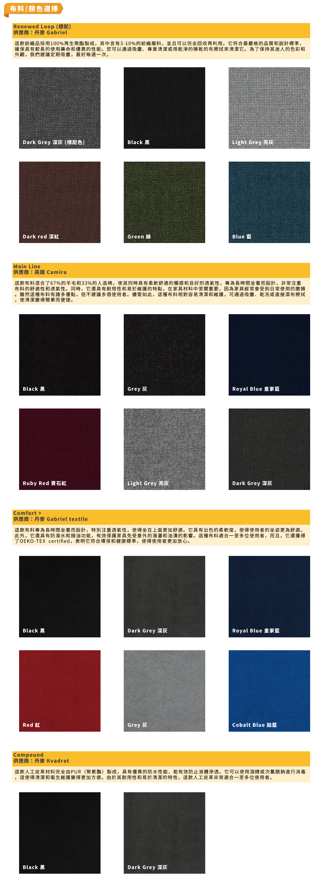 ◈高品質Camira紡織布料,以耐磨性強、舒適度好、可清潔性高而聞名