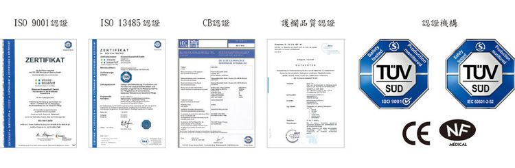 ISO 9001認證、ISO 13485認證、CB認證、護欄品質認證