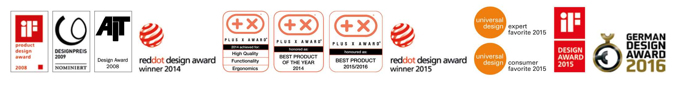 德國iF設計獎、Designpreis - Nominee、AIT-Award、紅點設計獎、Plus X Award、德國國家設計獎