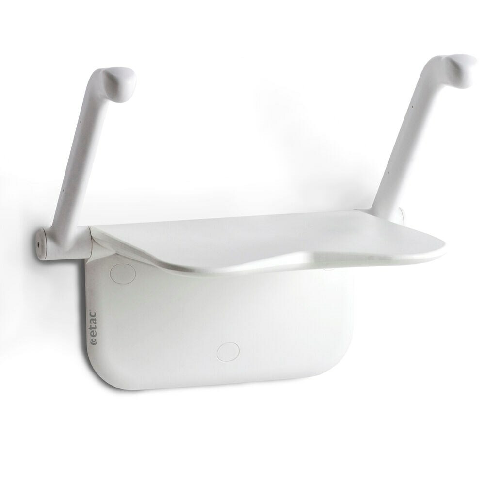 當長輩喜歡淋浴但浴室空間較小時,壁掛可折疊收起的設計就顯得很方便。加上扶手可收起設計,特別方便年長者入座或起身;當淋浴完畢後,亦可在兩側扶手放置毛巾方便擦拭。搭配上座椅防滑塗層和人體工程學設計,牢固的握柄提供手臂支撐,可更進一步確保其穩定性。