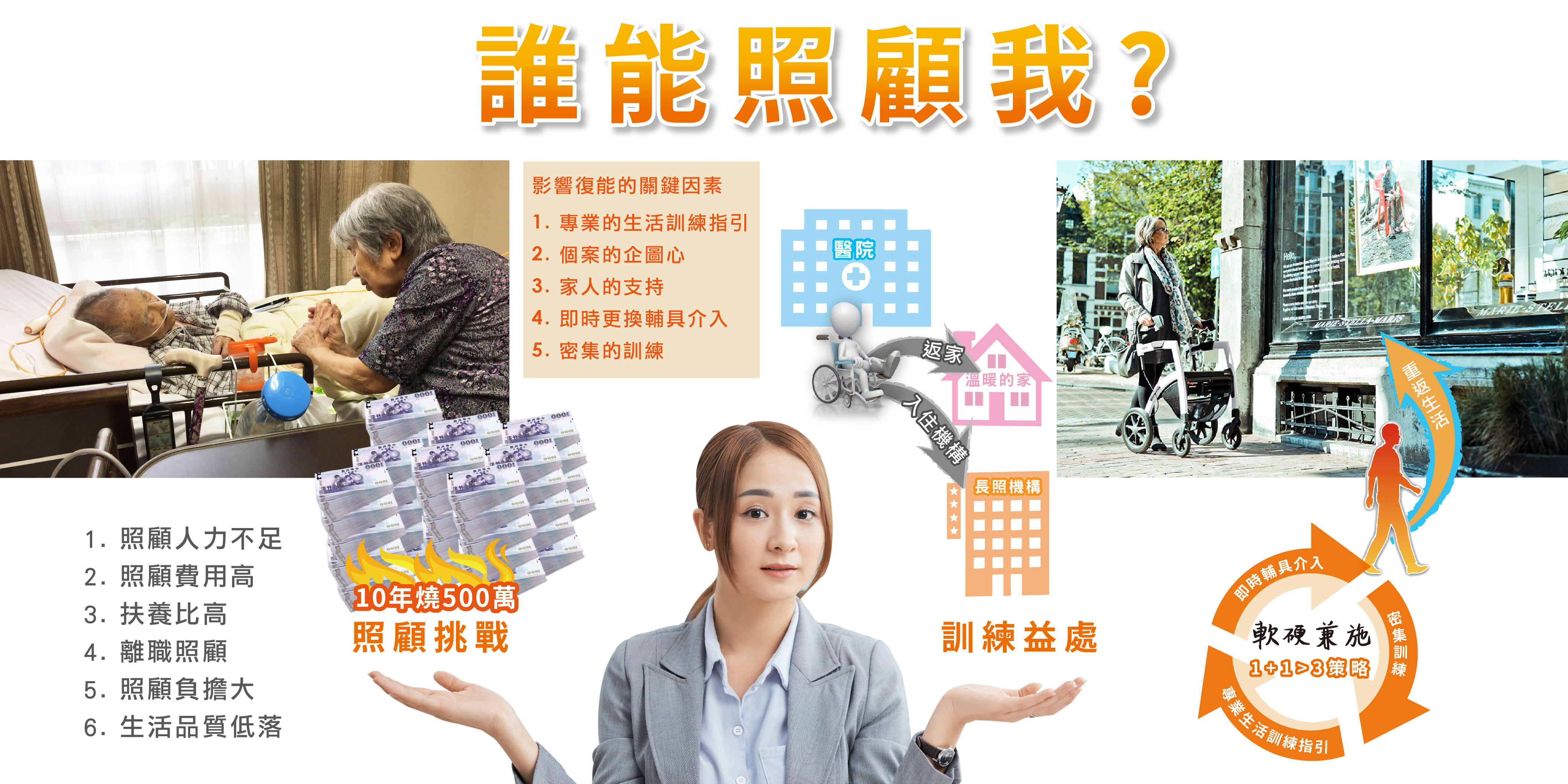 無論是等待住院,或是返家復健許久沒有進展的長輩,我們在強生寓所之中為他整合資源、進行完整評估與規劃,提供針對性的訓練與協助,同時減輕照顧者壓力,我們計畫在三到六個月之內,讓長輩不但能夠回家,而且重新取得生活的自主權。