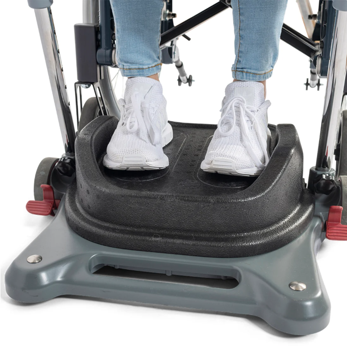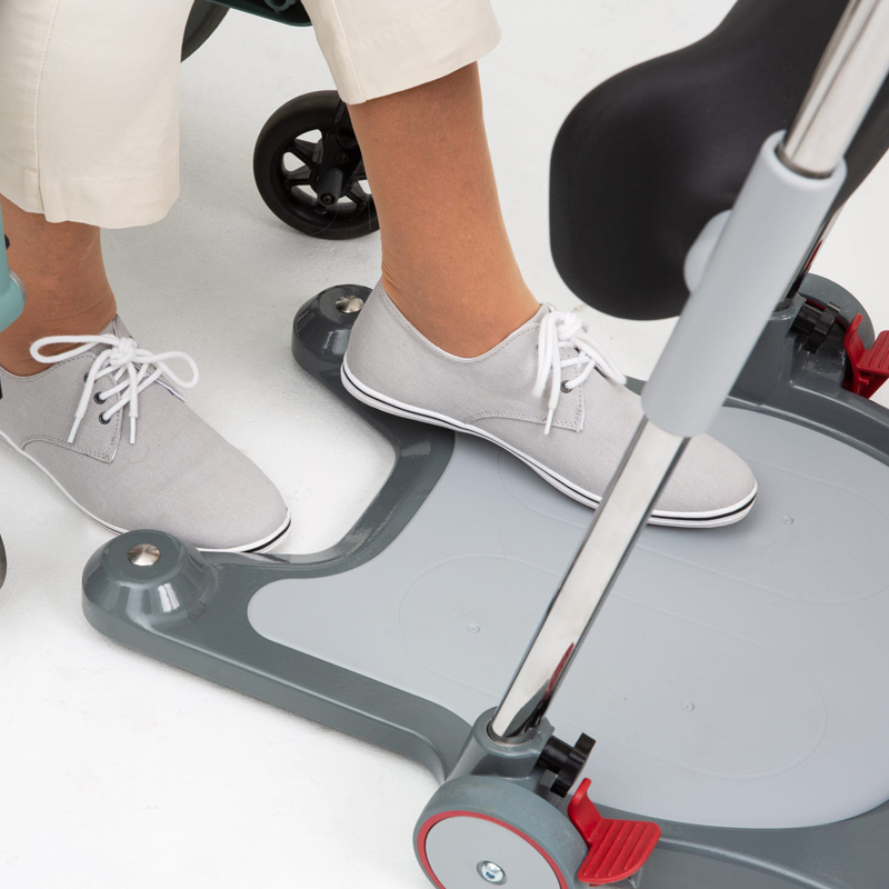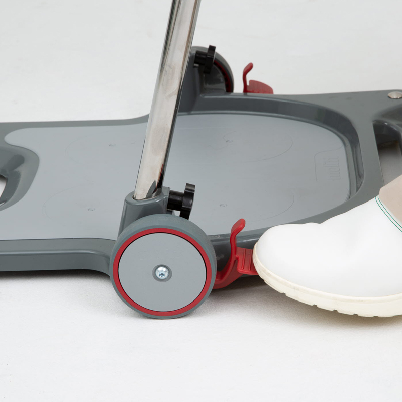 本機獨有的腳部支撐設計,使用者只需使用單手便可輕鬆調整操作。即使在空間侷促的環境,本機設計的輪鎖(左輪或右輪)可在需要時提供及時的煞車功能。腳踏板部分之細顆粒表面處理亦有防滑功能,握把的設計也便於使用者維持身體穩固。